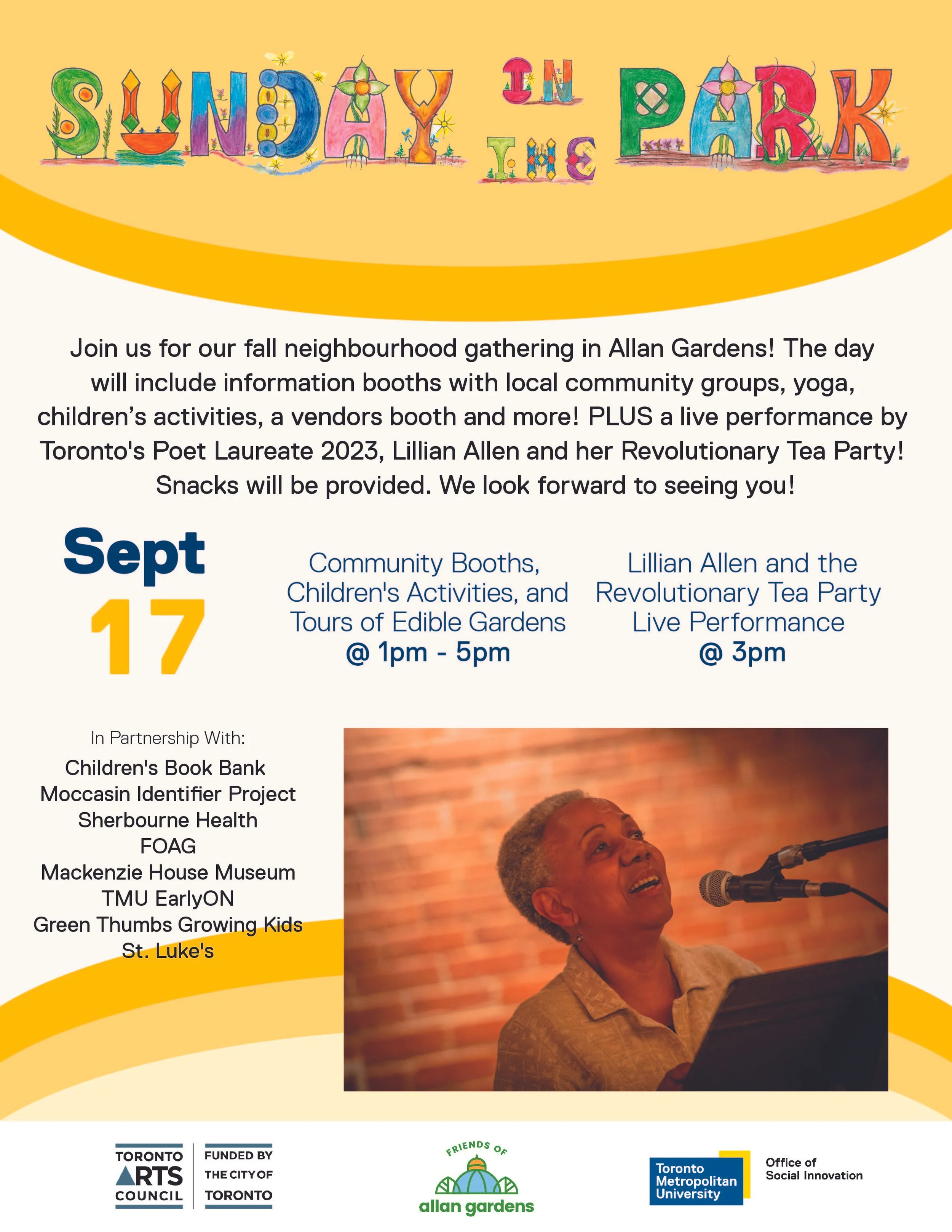 ๐ Sunday in the Park, Urban Agriculture Week Open House & A Performance by Lillian Allen!