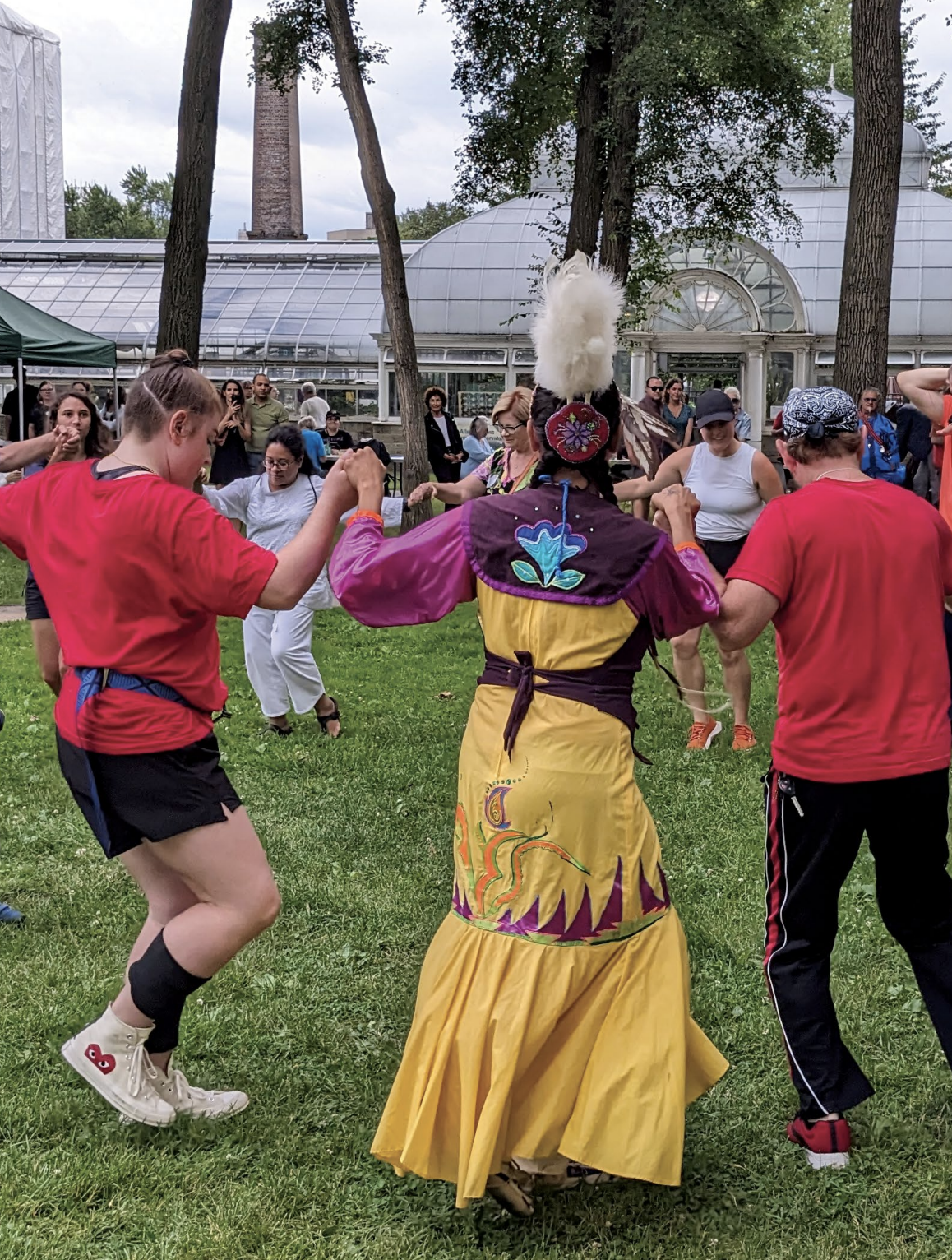 Above: Cotee Harper dancing with members of Samba Squad during a Sounds Like a Park performance in Allan Gardens in July, 2023.